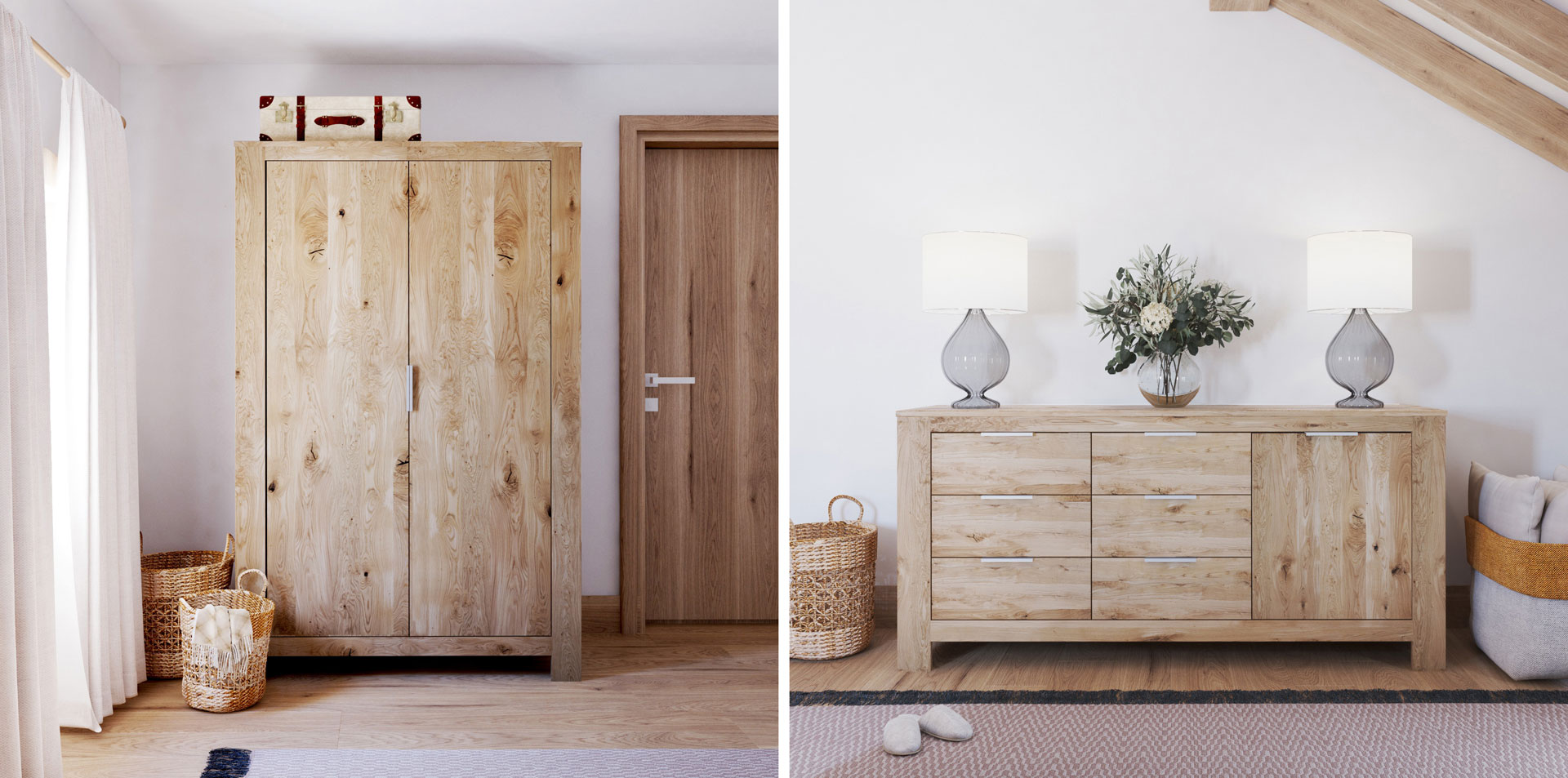 Für uns war Eiche schon immer ein Symbol für Haltbarkeit und Schönheit. Möbel aus diesem Material sind solide, würdevoll und einzigartig. Jedes Möbelstück besteht zu 100% aus massivem Eichenholz, was sich unbestreitbar auf das natürliche Design dieses würdigen Baumes bezieht. Ist es möglich, Tradition mit Moderne zu fusionieren? Selbstverständlich. Originelles Design, hochwertiges Holz und traditionelle Handwerkskunst sind die drei Elemente, dank denen wir diese ungewöhnliche Linie von Möbeln entwickeln konnten.