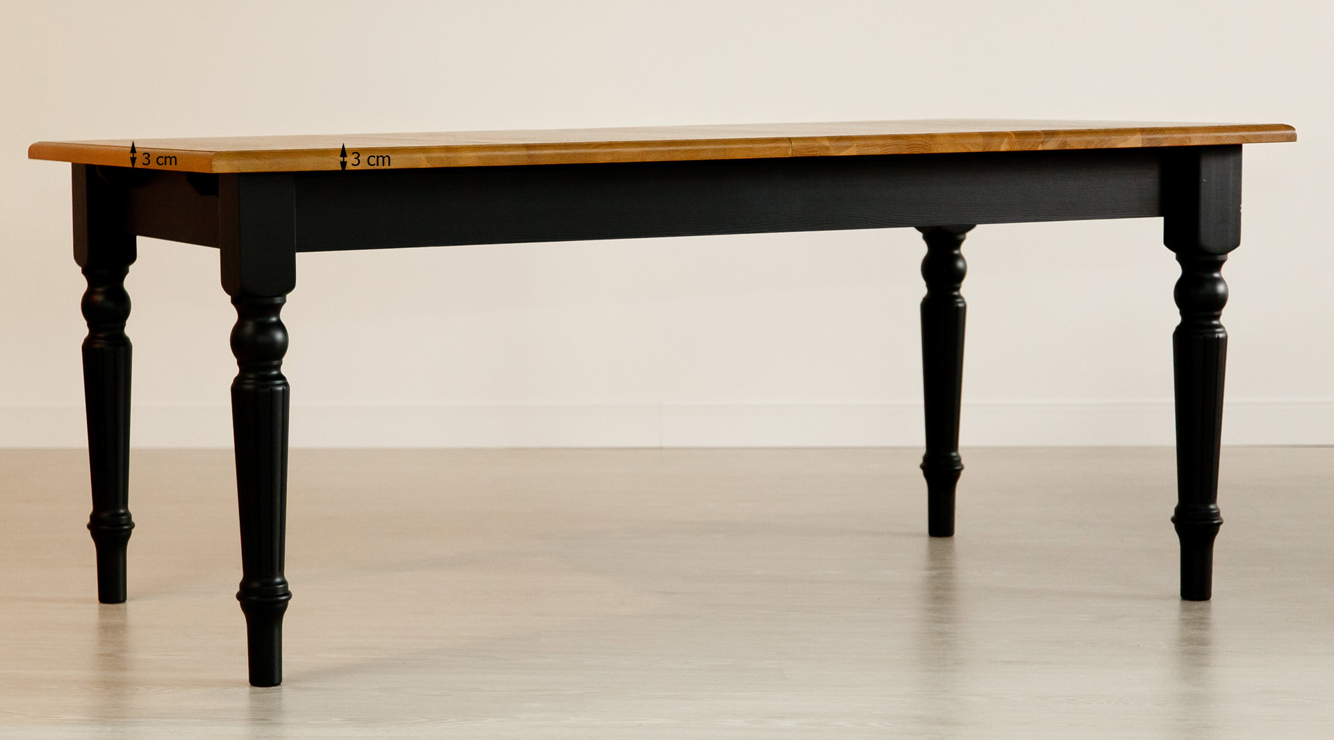 Bei den Ausziehtischen der Kollektion Nizza sind die Lamellen vertikal angeordnet, bei den Nicht-Ausziehtischen ist ihre Anordnung horizontal. Diese Behandlung wurde aus technologischen Gründen angewandt. Sie zielt darauf ab, Spannungen zu beseitigen, die einen direkten Einfluss auf den Betrieb der Führungen haben.